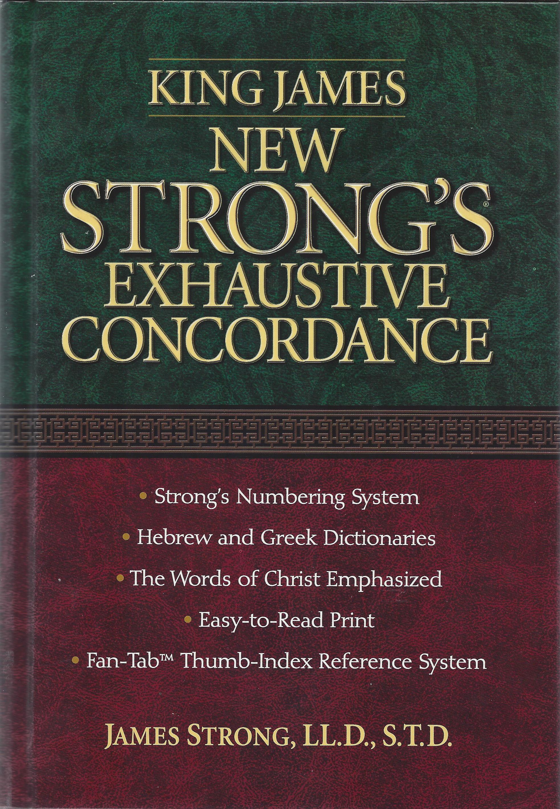 “King James, New Strong’s Exhaustive Concordance” James Strong, LL.D., S.T.D., by Thomas Nelson Publishers, 2001, 1900 pages, Hardcover, Perfect condition |